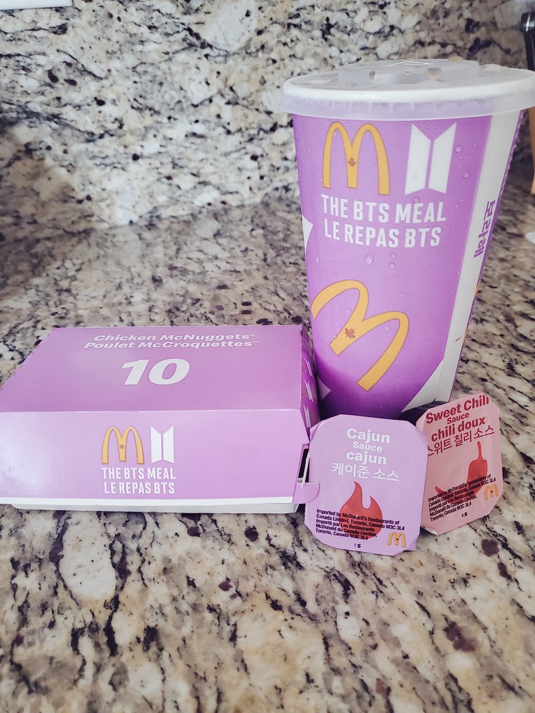 Alice F 勇气 愛 S Tweet I Got The Bts Meal From Mcdonaldscanada I Love The Packaging With The Purple Maple Leaf Bts Twt Logo And 보라해 The Chicken Nuggets Tastes Good With Both